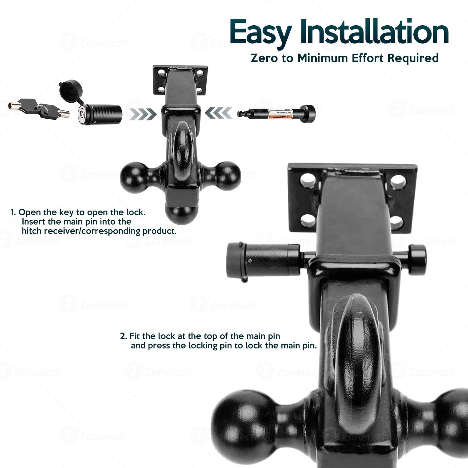 ► SMART DESIGN - The Zone Tech hitch anti-lock is made to be effectively anti-theft with its plum blossom circular design lock core. The lock prevents the coupler latch from moving.► EASY OPERATION - The Zone Tech hitch anti-lock is easy to use. Just need to push the tubular key to lock and unlock After hearing "click", you simply need to pull the lock head to guarantee it is working.