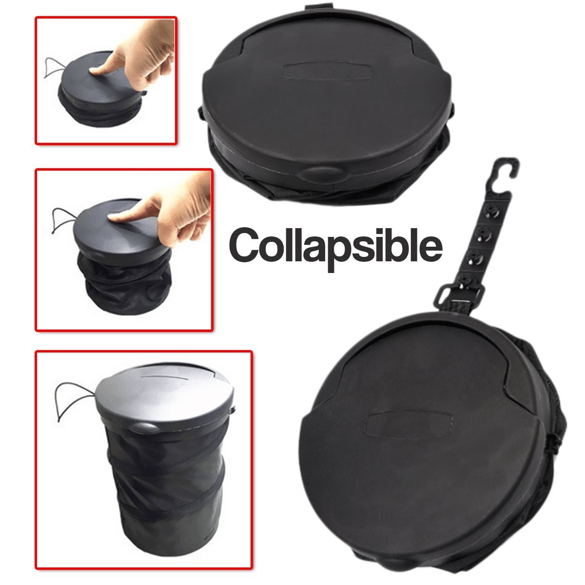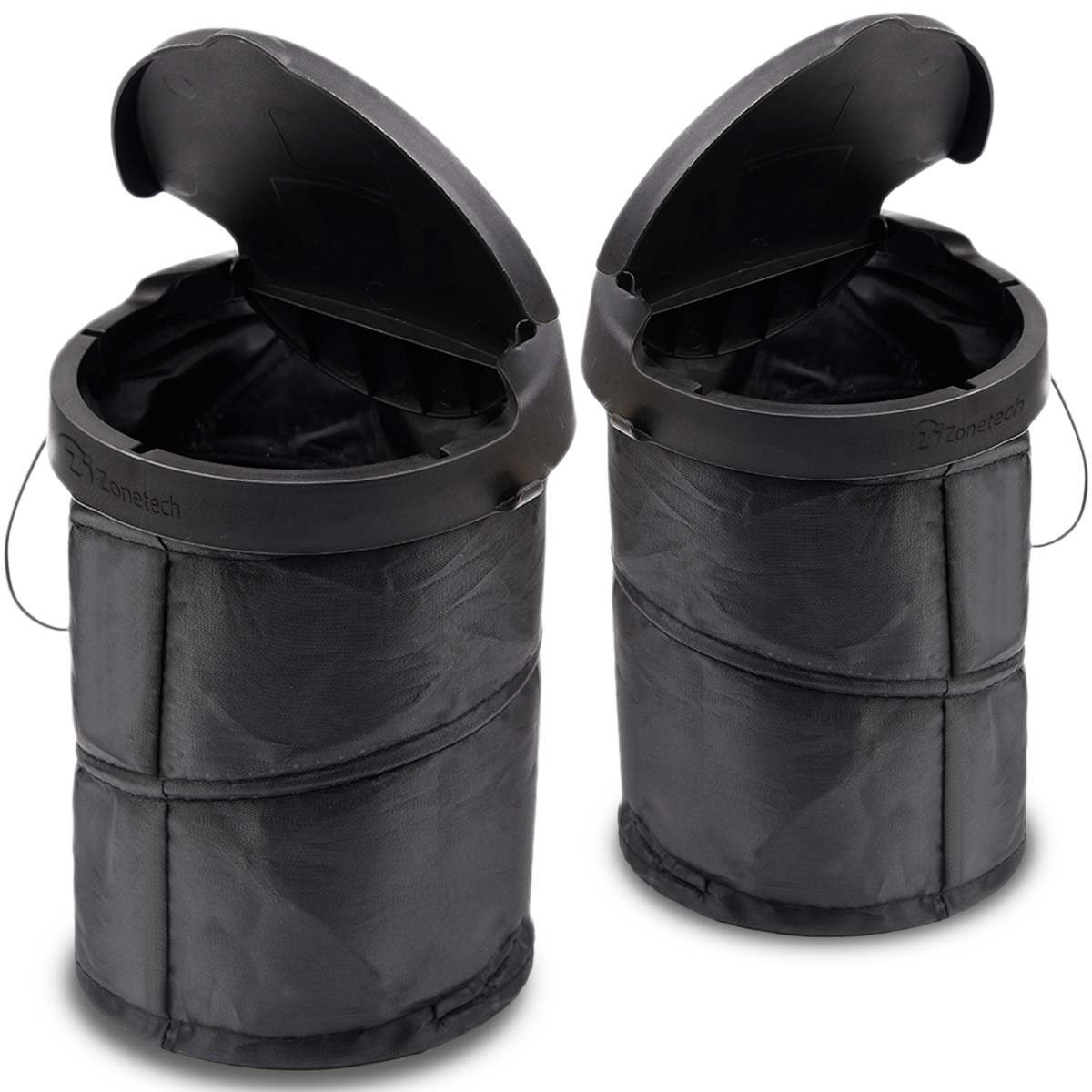 Zone Tech Universal Traveling Portable Car Trash Can - 2-Pack Black Collapsible Pop-up Leak Proof Trash Can