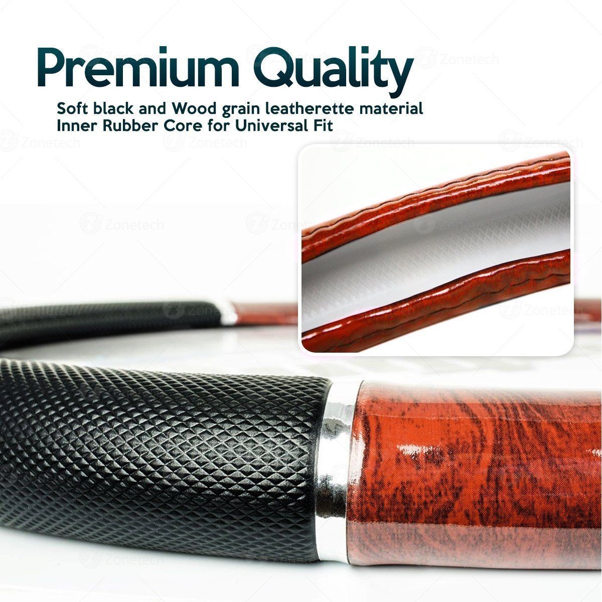 ► Add Style to your steering wheel with the Zone Tech Black and Wood Style Steering Wheel Cover. Not only does the steering wheel cover Improve the appearances of the old and dirty steering wheels it will also make you feel more Comfortable when handling the steering wheel. The steering wheel cover also offers Unique decoration for your car and is a Great Replacement for your damaged and worn original factory leather covered steering wheels. Your steering wheel will totally look New, Great and Professional.