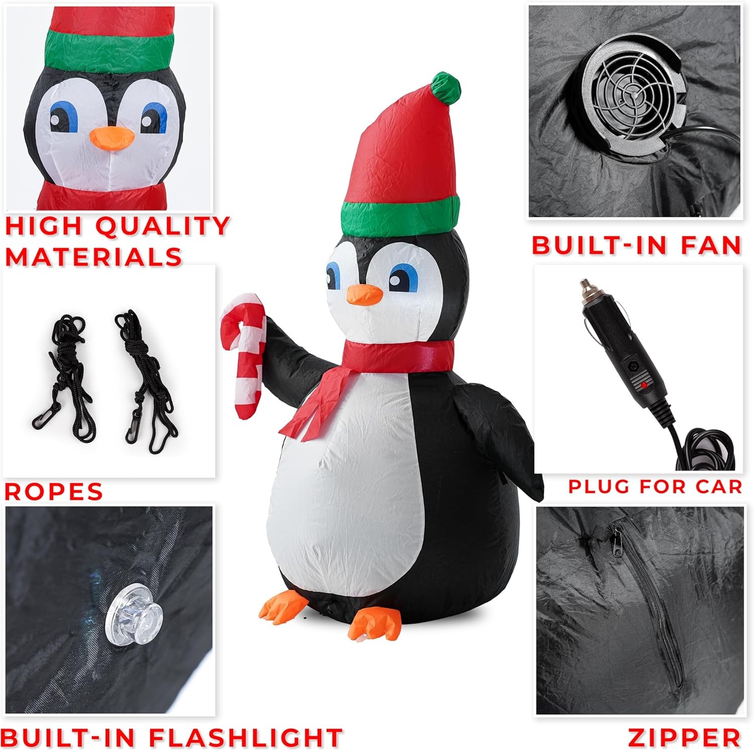 Zonen Tech Christmas Inflatable Car Decoration - Penguin Car Buddy with 12V Car Plug, LED Lights Outdoor Christmas Decoration Blow-Up Easy Set-up, Xmas Decorations Holiday Season for Automotive Accents